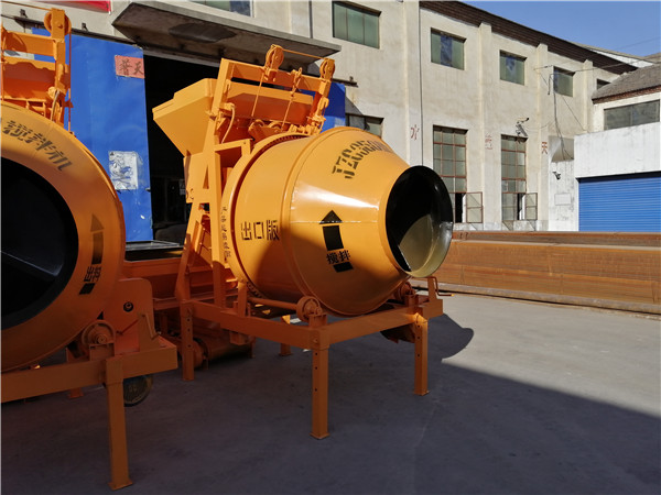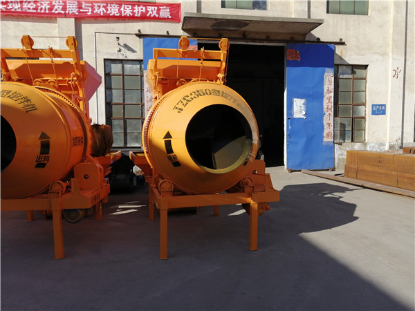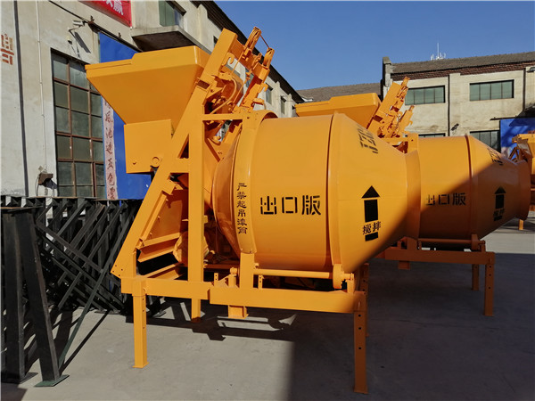 該機是雙錐形拌筒正轉攪拌、反轉出料、自落式混凝土攪拌機,可攪拌塑性的半干硬性混凝土,本機拌筒由齒輪轉動,與磨擦式攪拌機相比具有傳動可靠、料斗卸料速度快、不粘料、雨霧天拌筒不打滑等優點。料斗落入地面以下(全爬機)能降低裝料工人勞動強度,如果與匹配的配料機使用,能組成簡單的電子計量攪拌站,全爬機主機攪拌和料斗提升分成兩個減速機來完成,與半爬攪拌機相比,減輕了主機攪拌減速機的負荷,增加了提升料斗的減速機。
